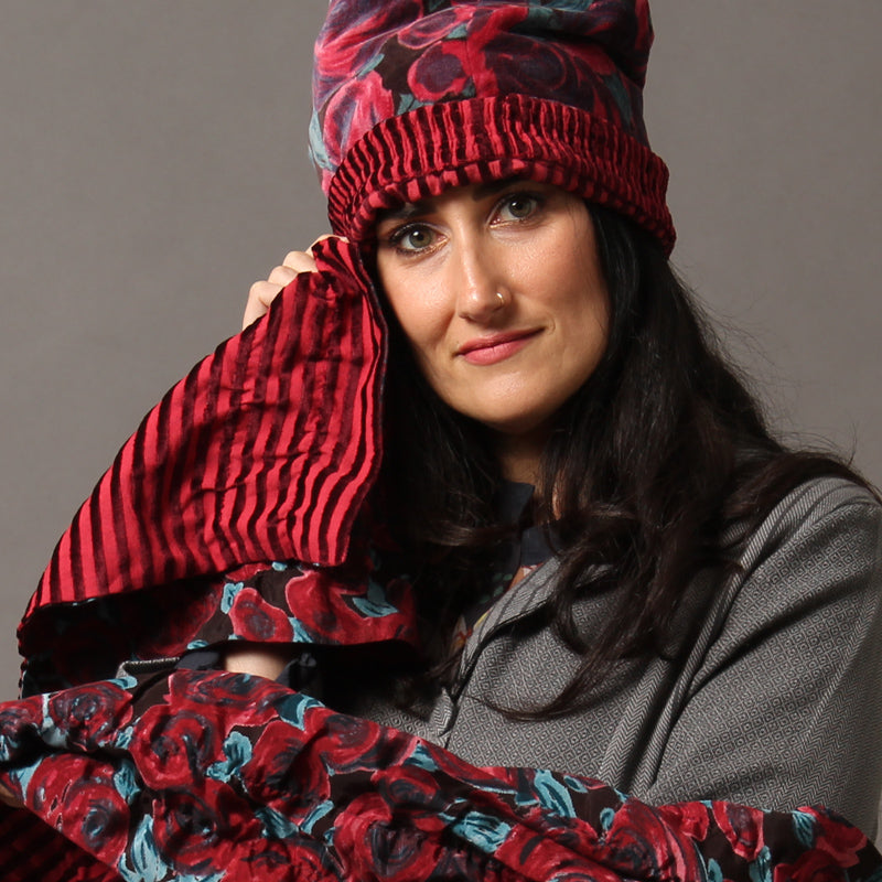 Ruffles of soft velvet embrace your neck. Snuggle around your neck with our extra long scarf. Braving you for the chill to come.