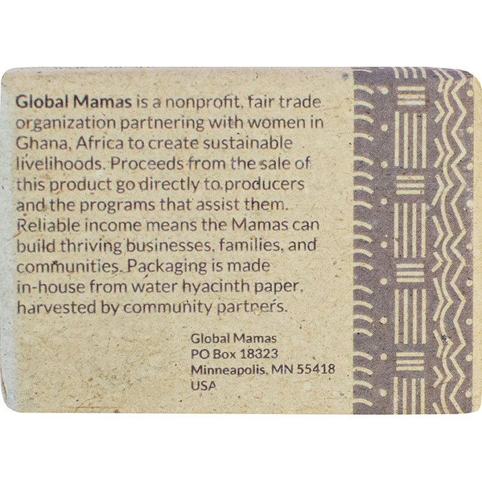 Handmade by women in Ghana from pure unrefined shea butter, coconut oil, sodium hydroxide, and essential oils. All natural and vegan. 4.2 oz/120g.