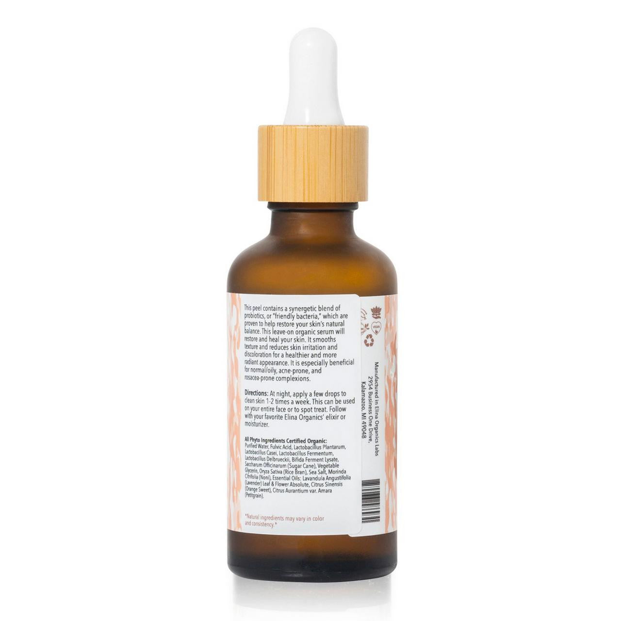 This peel contains a synergetic blend of probiotics, or “friendly bacteria,” which are proven to help restore your skin’s natural balance. This leave-on organic serum will restore and heal your skin. It smooths texture and reduces skin irritation and discoloration for a healthier and more radiant appearance. It is especially beneficial for oily complexions, acne, and rosacea.