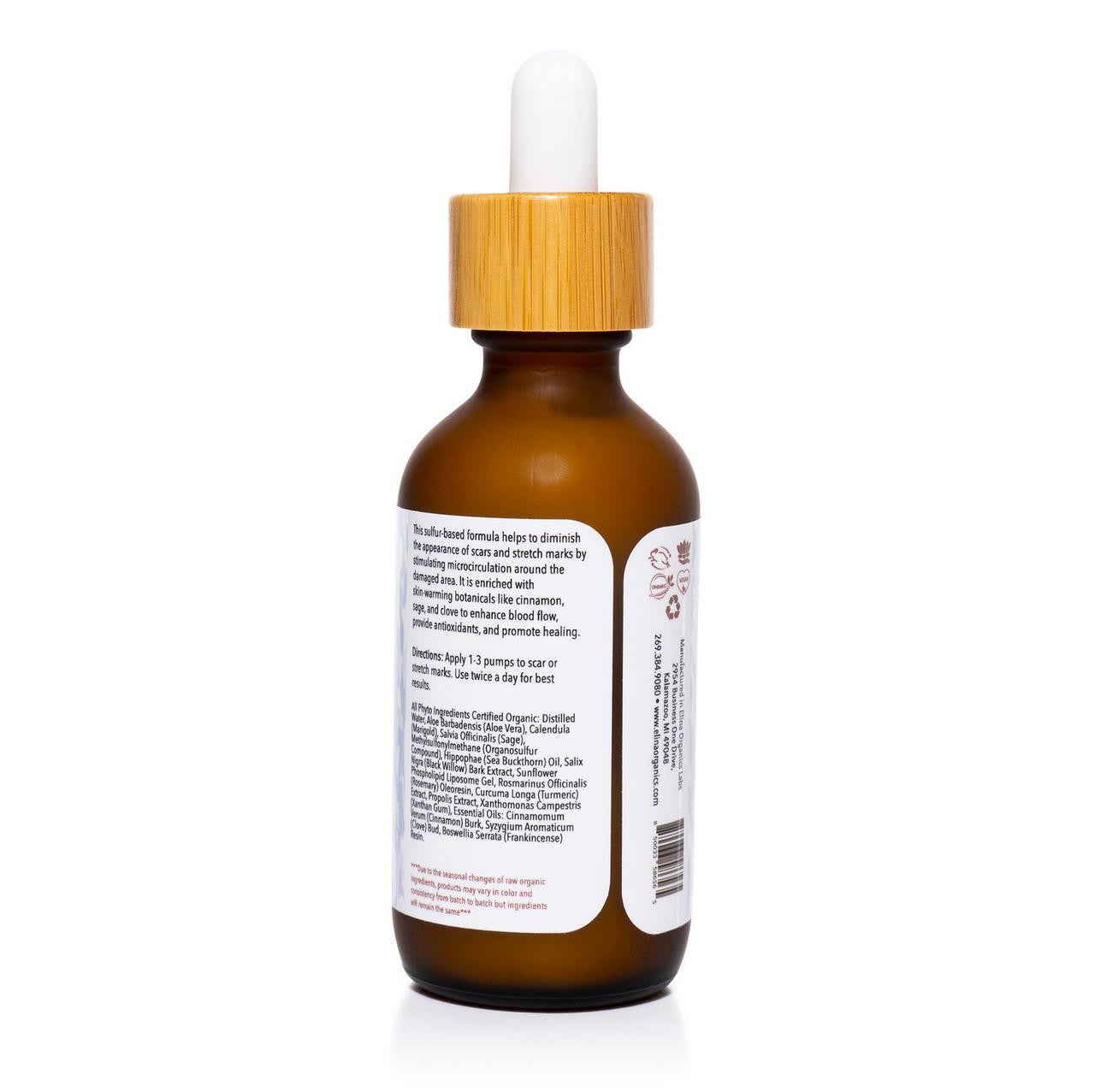 This sulfur-based formula helps to diminish the appearance of scars and stretch marks by stimulating microcirculation around the damaged area. It is enriched with skin-warming botanicals like cinnamon and clove to enhance blood flow, provide antioxidants, and promote healing.