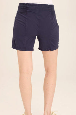 This classic poplin drawstring-waist short features a raw-edge contrast ribbed waistband, twill tape details, and cargo pockets with flat snaps.