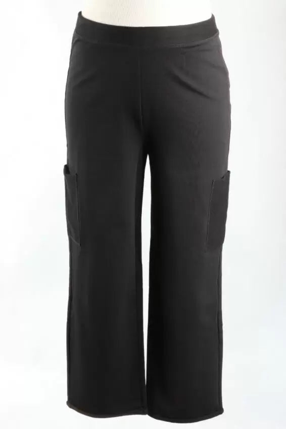 Made for the long haul in stretch cotton terry, the durable Pocket Flood perfectly transitions into cooler fall temps.  A full length pant with a full leg and textured contrast fabric at the pull on waistband, the knee level pockets and the banded hemline.
