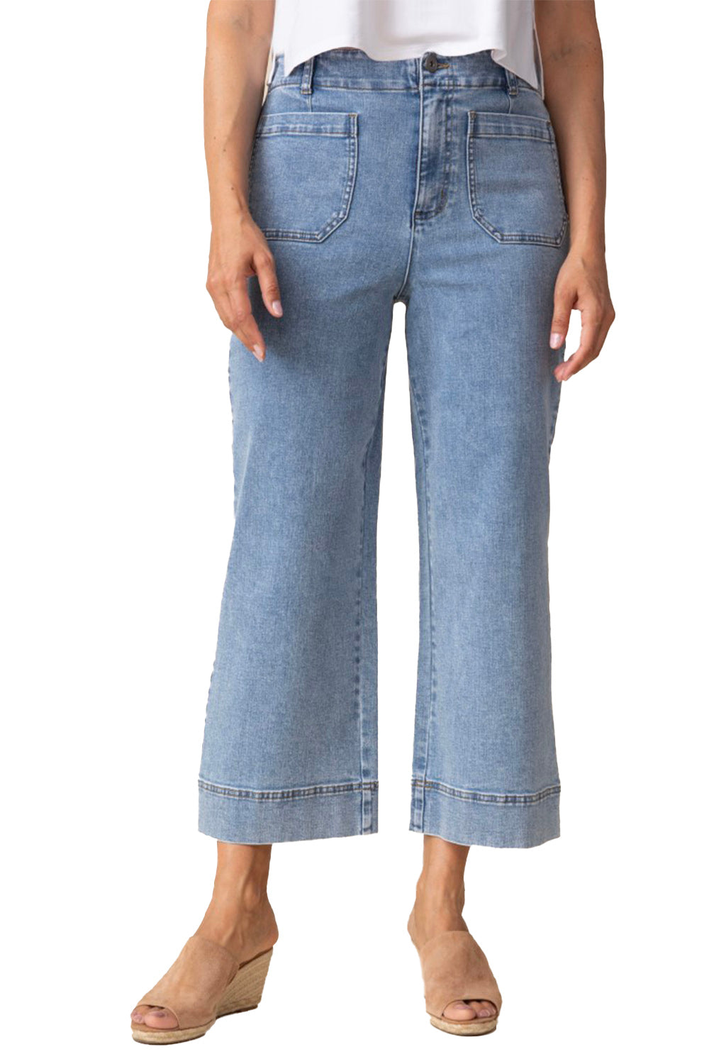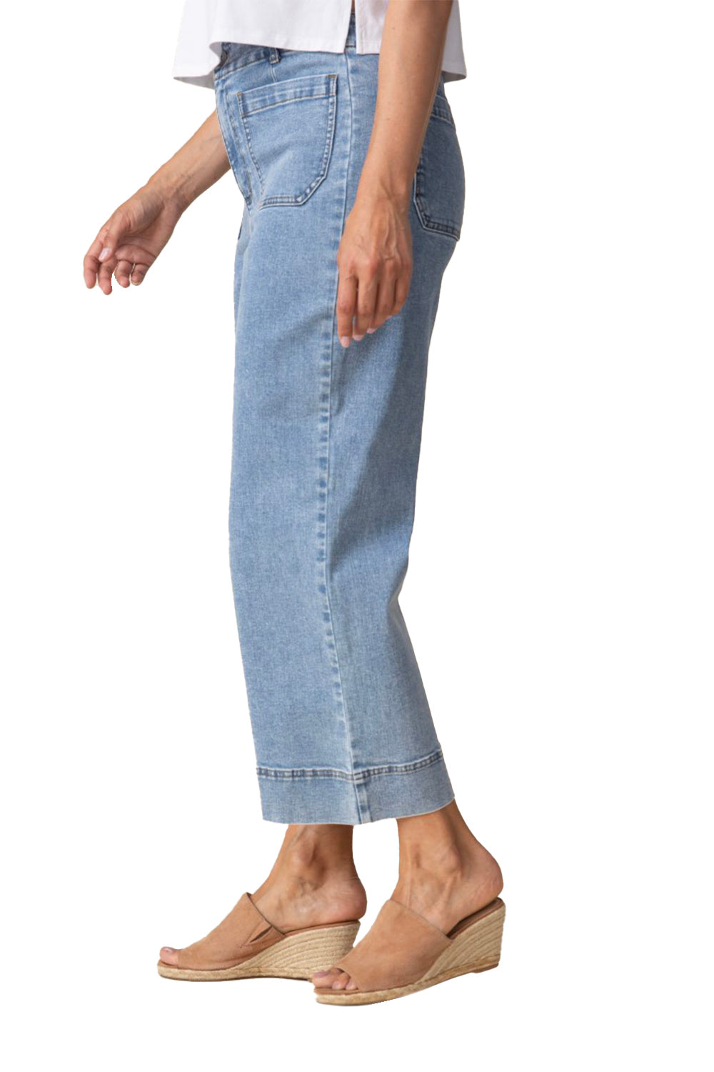 The Habitat Wide Leg Crop Stretch Light Denim women's pants have the following features: