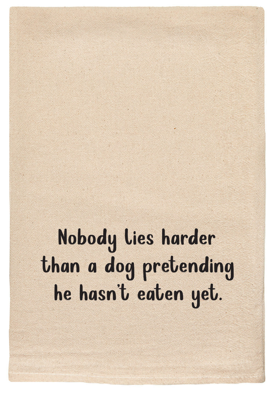 Nobody lies harder than a dog pretending he hasn't eaten. Kitchen Tea Towel