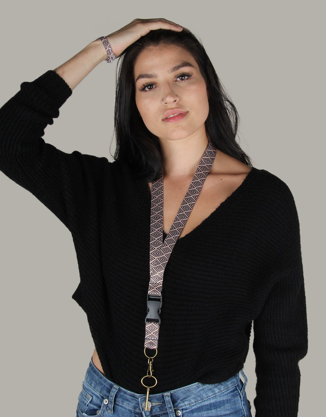 - Detachable lower portion with plastic buckle clip + metal ring and clasp