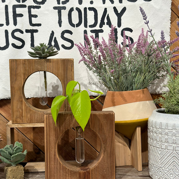 You'll love the organic shape of this Planter Vase made out of Recycled Pine Wood. Use it to hold faux flowers to create a tablescape inspired by natural elements. Fill it with artificial plants or succulents or faux flowers in your dining room, office or for a bar at your wedding or event.