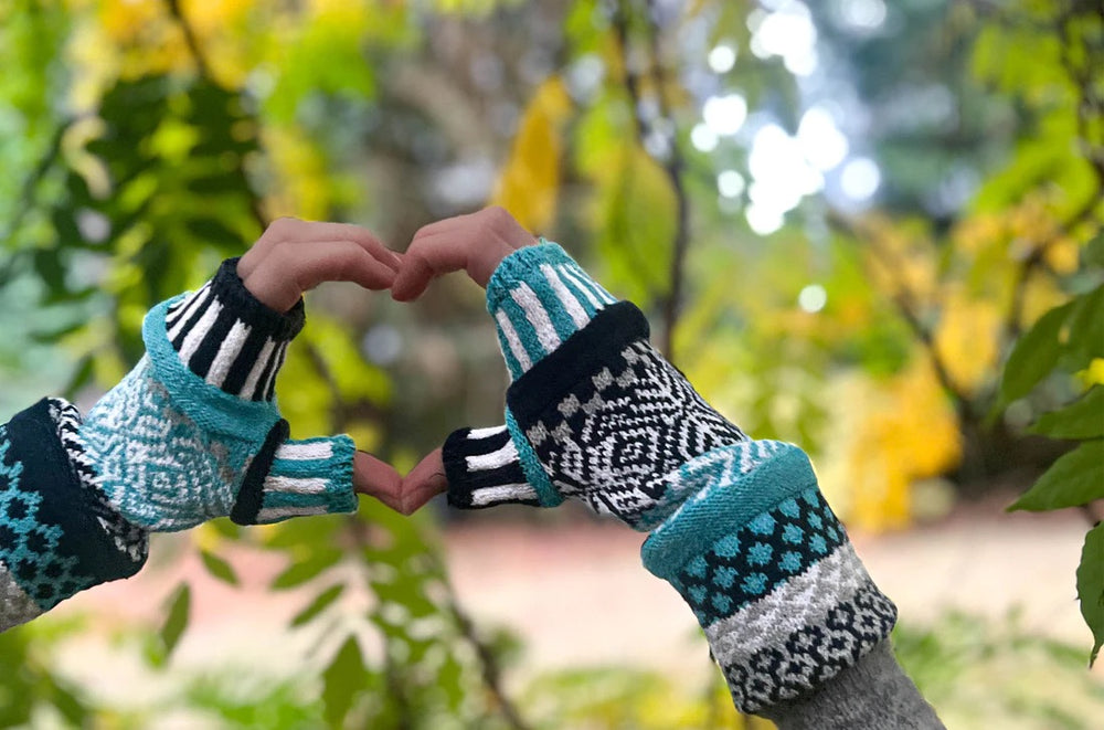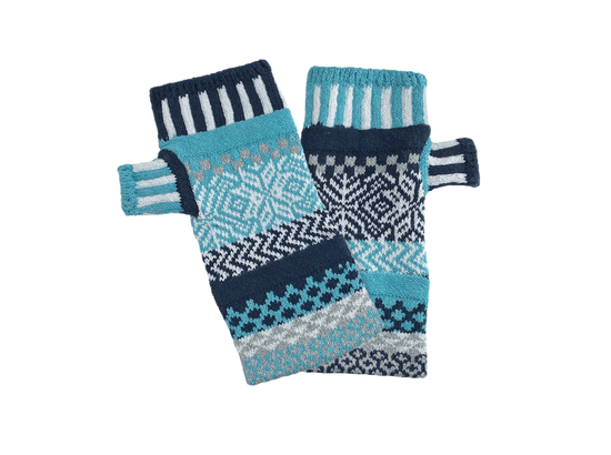 These fingerless mittens come in the same color patterns as our beautifully whimsical socks. Perfect for keeping hands nice and warm on chilly days, while still giving you the freedom to do all of the important things you need to do: work, text, drink cozy beverages, etc. Step over winter gloves, fingerless mittens are the new accessory in town. One size fits most adults.